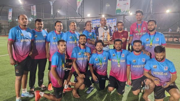 সাউথইস্ট ব্যাংক দুর্দান্ত খেলে প্লেয়ার অফ দ্যা ম্যাচ হয়েছেন মোহাম্মদ মুশফিকুর রহমান