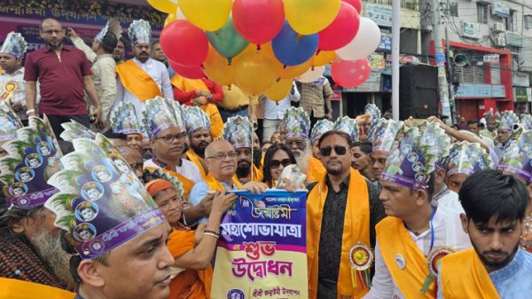সনাতন ধর্মের প্রাণপুরুষ ভগবান শ্রীকৃষ্ণের জন্মদিন শুভ জন্মাষ্টমীতে আবারও এসেছে সম্প্রীতির ডাক। জন্মাষ্টমী উদযাপন পরিষদ কেন্দ্রীয় কমিটির আয়োজনে শনিবার (১৬ আগস্ট) সকালে নগরের আন্দরকিল্লা মোড়ে উদ্বোধনী অনুষ্ঠান শেষে আয়োজন করা হয় বর্ণাঢ্য শোভযাত্রা।