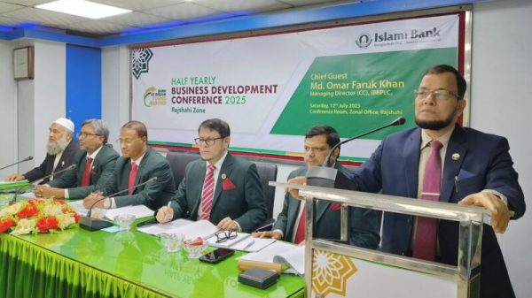 নিজস্ব প্রতিনিধি: ইসলামী ব্যাংক বাংলাদেশ পিএলসির রাজশাহী জোনের অর্ধ-বার্ষিক ব্যবসায় উন্নয়ন সম্মেলন শনিবার (১২ জুলাই) ব্যাংকের রাজশাহী জোনাল অফিস কনফারেন্স হলে অনুষ্ঠিত হয়েছে। ব্যাংকের ম্যানেজিং ডাইরেক্টর (চলতি দায়িত্ব) মোঃ ওমর