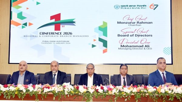 পূবালী ব্যাংক পিএলসি’র অঞ্চল ও কর্পোরেট শাখা প্রধানদের প্রথম ব্যবসায়িক সম্মেলন-২০২৬ অনুষ্ঠিত হয়েছে। বৃহস্পতিবার (১৫ জানুয়ারি) ব্যাংকের প্রধান কার্যালয়ের অডিটোরিয়ামে অনুষ্ঠিত এ সম্মেলনে সকল অঞ্চল প্রধান, কর্পোরেট শাখা প্রধান এবং