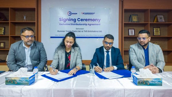 নিজস্ব প্রতিবেদক: বিশ্ববিখ্যাত টায়ার প্রস্তুতকারক প্রতিষ্ঠান TVS Srichakra Limited (TSL) বাংলাদেশের বাজারে তাদের কার্যক্রম সম্প্রসারণের লক্ষ্যে Runner Trade Park Limited-কে একমাত্র অনুমোদিত ডিস্ট্রিবিউটর হিসেবে নিয়োগ দিয়েছে। এই চুক্তির আওতায় TVS