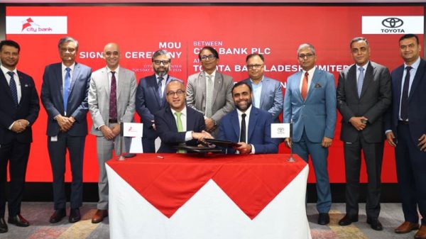 সিটি ব্যাংক পিএলসি ও টয়োটা বাংলাদেশ লিমিটেড কৌশলগত অংশীদারিত্বের লক্ষ্যে একটি সমঝোতা স্মারক (এমওইউ) স্বাক্ষর করেছে। অনুষ্ঠানটি সিটি ব্যাংকের প্রধান কার্যালয়ে অনুষ্ঠিত হয়। সোমবার (৯ মার্চ) ব্যাংকটি এক সংবাদ বিজ্ঞপ্তিতে