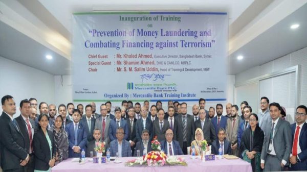 সিলেটে মার্কেন্টাইল ব্যাংকের ‘‘অর্থপাচার ও সন্ত্রাস অর্থায়ন প্রতিরোধ” বিষয়ক প্রশিক্ষণ অনুষ্ঠিত। মঙ্গলবার (৯ ডিসেম্বর) ব্যাংকটি এক সংবাদ বিজ্ঞপ্তিতে এ তথ্য নিশ্চিত করা হয়েছে। সচেতনতা বৃদ্ধি ও কমপ্লায়েন্স শক্তিশালী করার লক্ষ্যে