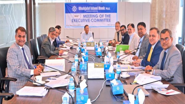 শাহ্জালাল ইসলামী ব্যাংকের নির্বাহী কমিটির ৯০৮তম সভা অনুষ্ঠিত হয়েছে। সম্প্রতি ব্যাংকের কর্পোরেট প্রধান কার্যালয়ের পর্ষদ সভাকক্ষে এই সভা অনুষ্ঠিত হয়। সভায় সভাপতিত্ব করেন ব্যাংকের নির্বাহী কমিটির চেয়ারম্যান আক্কাচ উদ্দিন মোল্লা।