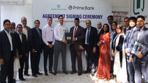 দেশের শীর্ষস্থানীয় বেসরকারি বাণিজ্যিক ব্যাংক প্রাইম ব্যাংক পিএলসি-এর কাছ থেকে পে-রোল ও ক্যাশ ম্যানেজমেন্ট সেবা নেবে বাংলাদেশের শীর্ষস্থানীয় প্রাণী খাদ্য উৎপাদনকারী প্রতিষ্ঠান কোয়ালিটি ফিডস লিমিটেড। সম্প্রতি ঢাকায় কোয়ালিটি ফিডস-এর কর্পোরেট