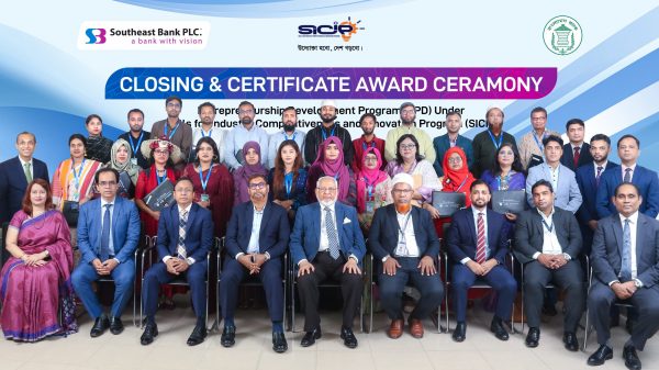 সাউথইস্ট ব্যাংক পিএলসি সম্প্রতি বাংলাদেশ সরকারের অর্থ মন্ত্রণালয় ও বাংলাদেশ ব্যাংকের তত্ত্বাবধানে পরিচালিত স্কিলস ফর ইন্ডাস্ট্রি কম্পিটিটিভনেস অ্যান্ড ইনোভেশন প্রোগ্রামের আওতায় মাসব্যাপী উদ্যোক্তা উন্নয়ন কর্মসূচির সমাপনী ও সার্টিফিকেট প্রদান অনুষ্ঠান