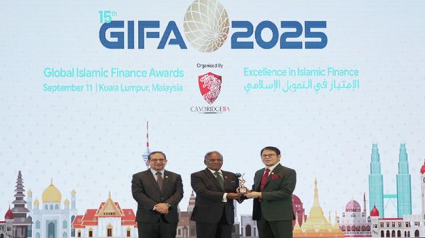 লন্ডনভিত্তিক গ্লোবাল ইসলামিক ফাইন্যান্স অ্যাওয়ার্ডস (জিফা) ২০২৫-এ ‘মোস্ট আউটস্ট্যান্ডিং ইসলামিক ব্যাংক-২০২৫’ পুরস্কার অর্জন করেছে ইসলামী ব্যাংক বাংলাদেশ পিএলসি। বৃহস্পতিবার (১১ সেপ্টেম্বর) মালয়েশিয়ার কুয়ালালামপুরের ফোর সিজনস হোটেলে আয়োজিত গ্লোবাল ইসলামিক ফাইন্যান্স