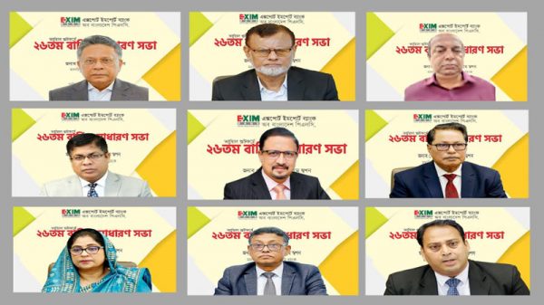 এক্সিম ব্যাংকের ২৬তম বার্ষিক সাধারণ সভা (এজিএম) বৃহস্পতিবার (২৮ আগস্ট) এক্সিম ব্যাংকের প্রধান কার্যালয় থেকে ভার্চুয়াল প্ল্যাটফর্মের মাধ্যমে অনুষ্ঠিত হয়। এতে সভাপতিত্ব করেন ব্যাংকের পরিচালনা পর্ষদের চেয়ারম্যান মোঃ নজরুল