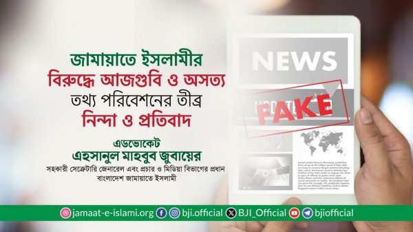 ‘জামায়াতের গুপ্ত রাজনীতির সত্যতা’ শিরোনামে লেখাটিতে বাংলাদেশ জামায়াতে ইসলামীর বিরুদ্ধে যেসব আজগুবি ও অসত্য তথ্য পরিবেশন করা হয়েছে তার তীব্র নিন্দা ও প্রতিবাদ জানিয়ে বাংলাদেশ জামায়াতে ইসলামীর সহকারী সেক্রেটারি জেনারেল