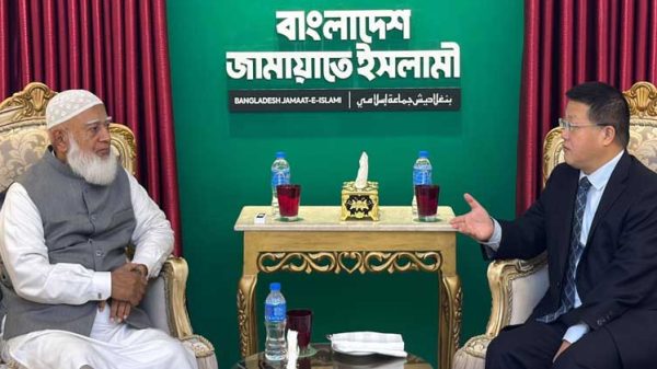 বাংলাদেশ জামায়াতে ইসলামীর আমীর ডা. শফিকুর রহমানের সঙ্গে বৈঠক করেছেন বাংলাদেশে নিযুক্ত চীনের রাষ্ট্রদূত মি. ইয়াও ওয়েন। সোমবার (১২ জানুয়ারি) সকাল ৯টায় রাজধানীর বসুন্ধরায় অবস্থিত জামায়াত আমিরের কার্যালয়ে এই বৈঠক