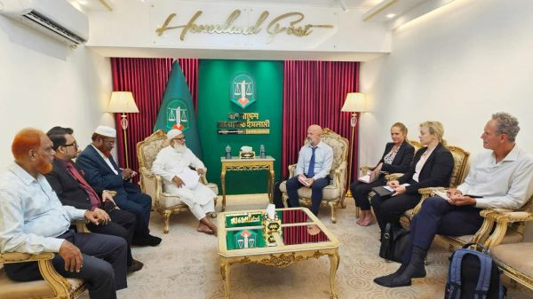 বাংলাদেশ জামায়াতে ইসলামীর আমির ডা. শফিকুর রহমানের সঙ্গে সৌজন্য সাক্ষাৎ ও বৈঠক করেছে ইউরোপীয় ইউনিয়নের ইলেকশন অবজারভেশন মিশনের উচ্চপর্যায়ের একটি প্রতিনিধি দল। রোববার (২৮ সেপ্টেম্বর) দুপুরে রাজধানীর বসুন্ধরার কার্যালয়ে এ