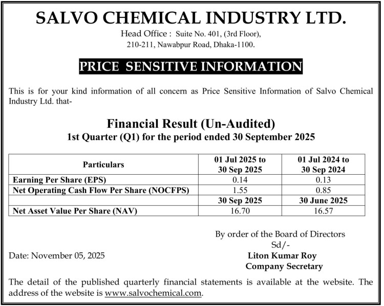 Price Sensitive Information of Salvo Chemical Industries PLC.